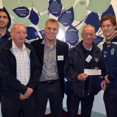 Geelong players Shane Kersten and Jed Bews were on hand at the venue for the presentation of a $5,000 grant to WRFLUA president Henry McFerran and secretary Terry O'Donnell. The grant will be used to aid female umpire development and recruiting for the 2017 season.